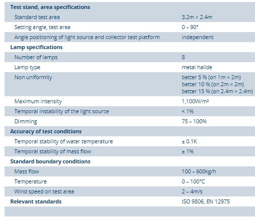 • Fully automated collector testing with inclination angles from 0 to 90°