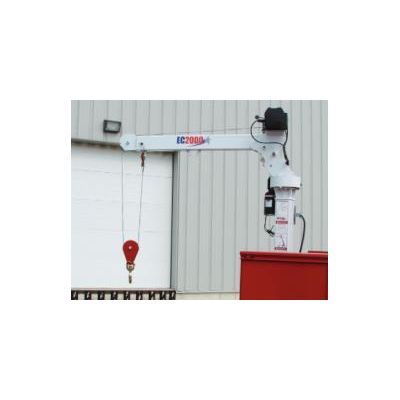 This crane, designed to mount to the rear of your service truck, has a 6,500 ft/lb. capacity, and 2000 lb. (two-part) 1000 lb. (single-part) maximum lifting capacity. The power rotation model, with streamlined rotation assembly and dual function corded remote control pendant, offers the more positive braking features inherent in a power driven gear drive. The more economically priced EC2000 with manual rotation and brake will do the job very well for you in many applications.
