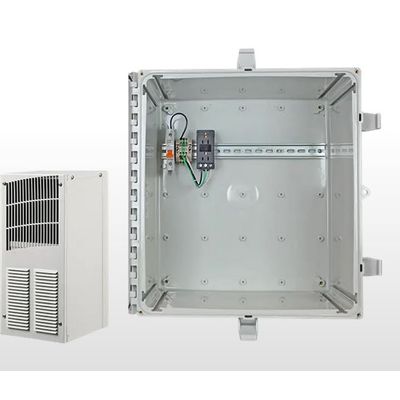 - Available with din rail power distribution strip only, NEMA 3R filter fan with filter vent and din rail power distribution strip, or AC/heater with thermostat and din rail power distribution strip.