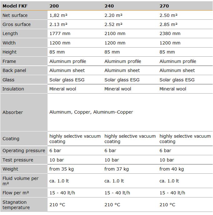 High performance flat collector FKF. Premium product. Fire protection certified (option). Complete collector system Latest collector technology Universally mountable Meander absorber Drainable Modular large collector.