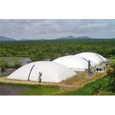 This storage system can be used to cover existing ponds and for storing biogas. The big advantage is a significant reduction in investment costs. Tecon provides the complete system consisting of the pond seal membrane and the biogas storage.