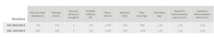 The range of hot water tanks is ideal for the production of hot water for combined applications (domestic hot water + central heating). This solution optimizes the available space and installation cost, leading to maximum energy savings. The range, made of enamelled steel, has two models with 800 and 1000 litres of total capacity. An ideal option for harnessing solar energy to reduce your energy bill.