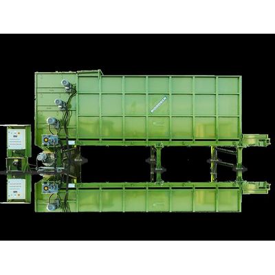 The dosage unit consists of 2 or 3 horizontal shredding rollers. These rollers further shred and regularly dose the mass into screw conveyors feeding the fermenter. The screw conveyors are not included in the basic execution; they are available as an option. The machine is equipped with its own control panel and central lubrication of all bearings.