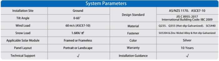 Multiple foundation options for different terrain which can support with various standard types of PV modules on the market.