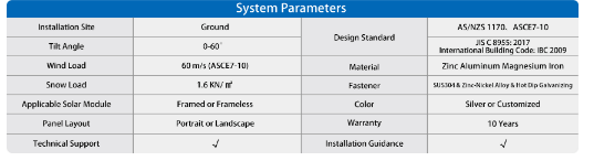 The support structure is simple, and there are few types of accessories. The cross beam and girder are pre-drilled in order to make the installation