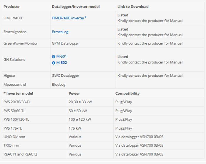 Below is a list of compatible FIME/ABB inverters.