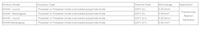 - Insulation materials: Polyester or Polyester-imide overcoated polyamide-imide
