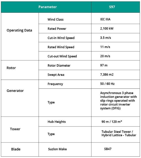 The S97 suite also offers expanded hub height options; S97 has hub height options of 90 meters and 120 meters, allowing higher power generation and greater cost optimization in low to medium wind speeds