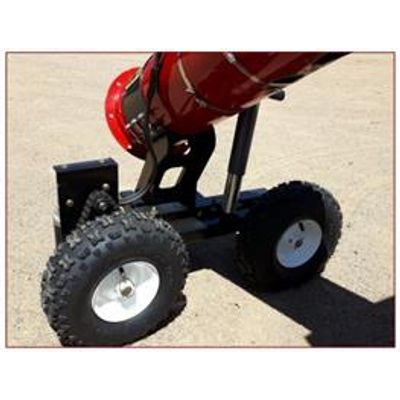 Advantages of our system are: Powerful electric worm gear drive supplying over 300 ft lbs of torque to the drive wheels; tube mounting of drive system keeps the drive wheels out from under the truck and any ruts your trucks and trailers may make.Height adjustable wheel system ensures you are never caught with your hopper high centered under your truck or trailer.
