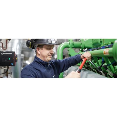 The CHP module is characterised by its particularly high electrical energy recovery from the dried sewage sludge. The synthesis gas produced in the fluidised bed reactor is converted into electricity and heat after a purification stage in a highly efficient combined heat and power plant (CHP). The electrical energy is used to cover the plant’s own needs or to feed into the grid, the heat for sludge drying. Since a large part of the energy contained in the synthesis gas is converted into electricity in the CHP module, less thermal energy is available for drying the sewage sludge. This energy deficit can be covered by using the available energy from digester gas. The waste heat from the drying process is in turn available for heating the digestion towers. Thus, the entire system remains thermally self-sufficient and the use of further energy sources is avoided.