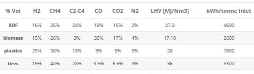 High temperature pyrolysis process carried in the absence of oxygen results in production of calorific syngas at exceptional heating values, up to even 36 MJ/Nm3. The most energy-rich gases are obtained from the raw materials featuring high calorific values – plastics, polymers, calorific fractions of municipal waste.