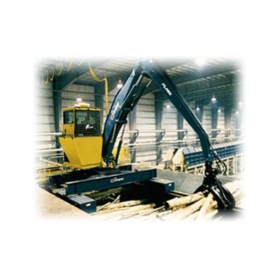 Lifting capacity of 64,000 lb. / 29,000 kg. Reach to 53 ft. / 16.2 m. 200 HP (149 kW) electric motor (TEFC). Hydraulic oil cooler with electrically driven fan. Two joysticks for easy operation of all loader functions. Roomy 72 in. X 60 in. (1,829 mm X 1,524 mm) cab engineered for safety and operator comfort, available on right or left side and plenty of room for I/O mill controls. Custom designed to suit your specific needs.