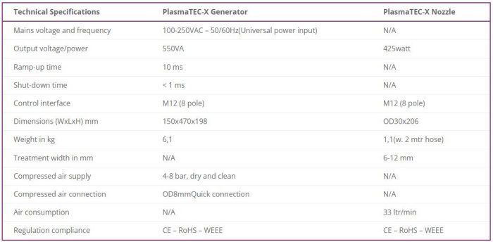 The versatility of this unit allows for use in fully integrated robotic cells, as a standalone unit, or in almost any production line. The PlasmaTEC-X OEM is based on the technology of the PlasmaTECdevice.