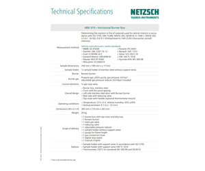 Fire testing system for determining the reaction to fire of materials used for vehicle interiors when exposed to a single flame source according to ISO 3795, DIN 75200, FMVSS 302, GB 8410, IS 15061, CMVSS 302, U.T.A.C. 18-502, FAR 25.853 (horizontal, aircraft – interiors).