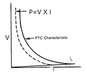 PTC thermistor positive resistance vs. temperature R/T characteristic means that electric power consumed is automatically adapted to the ambient thermal conditions. At an ambient temperature significantly lower than Tref, i.e. with good heat transfer, the PTC thermistor has low resistance and consumes a relatively large amount of power. If the ambient temperature is significantly higher than Tref or heat transfer is restricted, the resistance of the PTC thermistor rises rapidly and power consumption is limited to a very low value.
