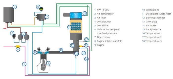 - AWF-b+ full-flow burner system with fully automatic regeneration without driver intervention
