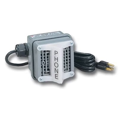 Model TELC Extension Ringer Combination Horn/Strobe can be activated by a telephone system ringing signal. TELC is specifically designed for use with an analog telephone. The ringing signal of 40-150VAC, 16-60Hz and local 120VAC power is all that is required to activate this model. This TelCom® device is intended to be mounted on a vertical surface such as a rigid wall or post. The TELC has a three conductor, six-foot, 120VAC power cord extending from the unit. Connecting the TelCom device to the telephone network is accomplished by running a modular telephone line cord (RJ11) to an existing jack or a duplex jack (customer supplied) into an existing modular jack. The TELC is designed with a durable zinc die-cast housing painted with gray powder coat enamel and feature an internal solid-state relay.