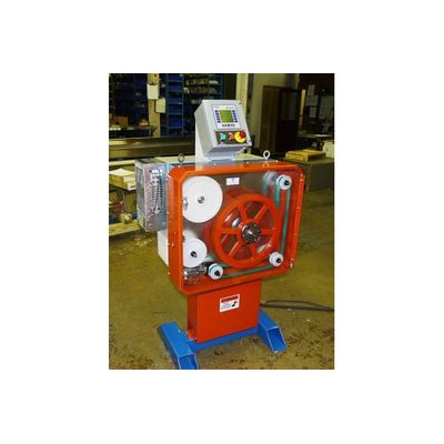 Tension Controllers are designed to maintain constant tension throughout a vast range of applications and process speeds. The system includes a mini belt wrap capstan, a tension transducer, an AC Drive, AC Motor, and a self-tuning closed-loop Digital PID control system. The Controller provides user access to set the desired tension and displays the actual running tension of the wire. The tension transducer measures the actual running tension of the wire or cable while the controller adjusts the AC motor in order to achieve desire tensions. The progressive multi-stage dampening system reduces tension spikes without inducing secondary oscillations to the wire exiting the capstan wheel. These features all contribute to the elimination of the tension variation due to whipping fluctuations common to dual flyer payoffs.