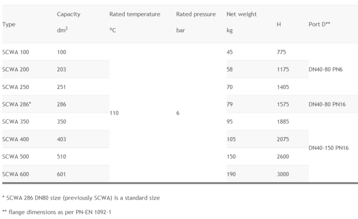 Domestic hot water temperature stabilizer is designed as a hot-galvanized cylindrical steel tank. The top section includes an inlet (1) and outlet (2) port with custom end connections. The bottom section is fitted with a vent port (3) and thermometer port (4). The top section includes a pair of ports (5) for temperature controller sensor and thermomanometer. The bottom section includes a pair of ports (6) for connecting circulation pump. Tank chamber is cleaned via a drain port (7).