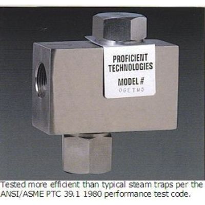 The ProTech Steam Trap Replacement Device (cut sheet) cannot fail in the open position because there are no moving parts to wear or fail so, unlike other steam traps, ITS EFFICIENCY DOES NOT DETERIORATE WITH TIME. Other important features: