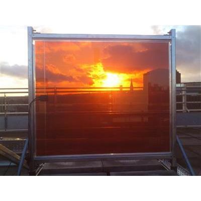 Ideal for façades, roofs and canopy structures due to its transparent active layer. This 90 W transparent amorphous silicon panel is an innovative addition to the building material market.
