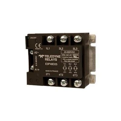 The Series E3P three-phase relays are designed for all types of loads. The design incorporates a thyristor output. Control status LED is a standard on all models. Output protection is provided internally on certain models. The Series E3P utilizes optical isolation to protect the control from load transients. High-current models are excellent for motor control. 25 amp, 600 vac 3 phase relay.