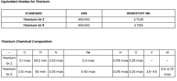 - Grades : Titanium grade 1 ,Titanium grade 5.