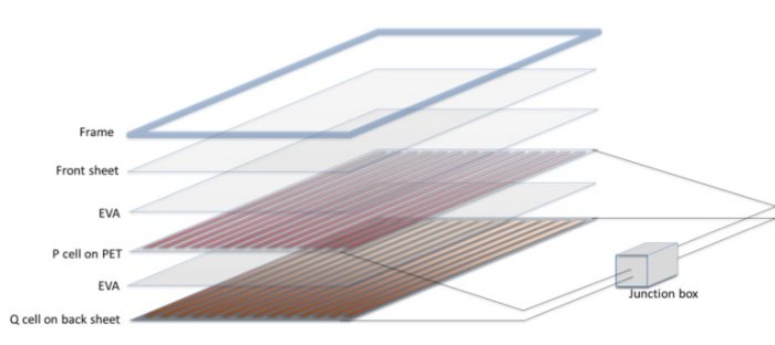 QD Solar-produced sheets contain both perovskites and quantum dot solar cells. These sheets are combined by panel manufacturers into a solar module by stacking the perovskite and quantum dot sheets on top of each other and laminating and framing them together into a perovskite and quantum dot solar panel. This panel is then wired to a smart junction box for power addition.