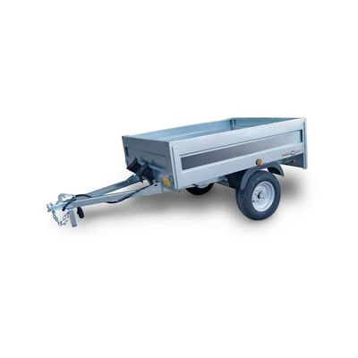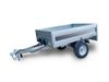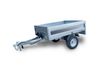 Thick, hot-dip galvanised sheet metal profiled chassis. Sturdy ring hooks on the platform to secure all types of load safely. Long drawbar for better maneouvrability. Shaped sheet metal loading platform. Open-out tailboard.