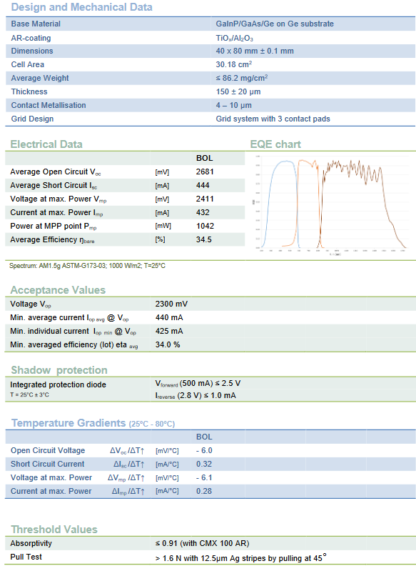 Azur-Space - Model Type 3T34C -Triple Junction Solar Cell
