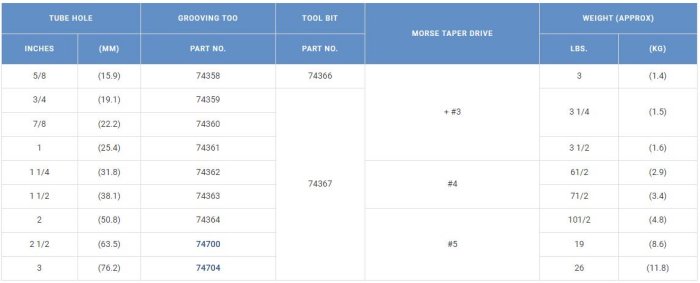 Wilson Grooving Tools groove tubesheets for heat exchangers, condensers, or boiler drums and can add strength to tube-to-tube seat joints and adjustment for depth of groove and position of tubesheets. Standard bits are 1/8 x 1/4 x 1/8, but other bit configurations are available upon request. Wilson Grooving Tools for heat exchangers are available in 5/8 to 3-inch (15.9 - 76.2) Outer Diameter with Morse taper drives of + #3, #4, and #5. The weight of Wilson Grooving Tools ranges from 3 to 26 (1.4 - 11.8 Kg) pounds.