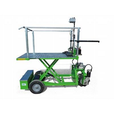 The platform, where only one operator can work, is adjustable in height to ease the use for the operator. The machine is equipped with a variable-speed unit and three wheels, of which one is a front driving wheel in central position. This allows an eceptional maneuverability in front operations avoiding any damage of the nylon in the greenhouses installations.