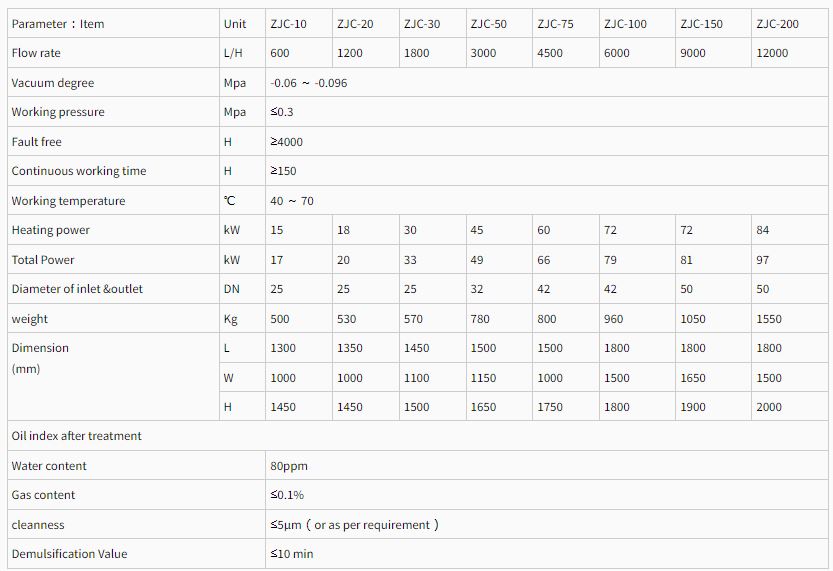 Tongrui ZJC seriesturbine oil filtration machine using the world's leading dedicated coalescing separation technology, a special polymer materials break emulsification device, not only can separate the large quantity of liquid water and free water quickly and easily, but also can remove the dissolved water in oil. At last it make turbid emulsified oil becomes clear and transparent.