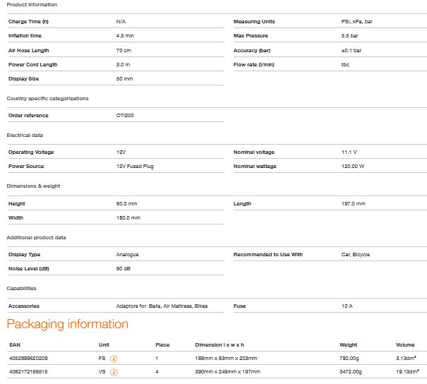 The OSRAM Tyreinflate 200 analogue tyre inflator inflates a 13” tyre from flat in up to 4.5 minutes**. It has a large on/off button for easy use. Its stable design keeps the inflator still while in use. Powered from an in-car 12V socket, the Tyreinflate 200`s long 3m power cable makes reaching all the tyres around the vehicles easier. Shows pressure readings in kPA, bar and PSI. Includes storage compartment for tyre valve caps when being used. Comes with three-piece adaptor set for use with bicycle tyres, motorcycle tyres, balls and other inflatables.