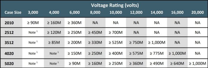 - Highest voltage ratings available in a surface mount resistor (up to 20,000 Volts).