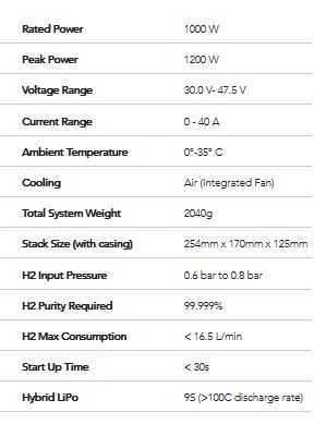AEROSTAKs are super lightweight hydrogen energy conversion devices that include a special grade PEM fuel cell stack, aerospace-grade control electronics, lightweight casings with integrated air cooling fans and a hybrid LiPo-compatible hybrid electronic board. See below for our different product specifications.