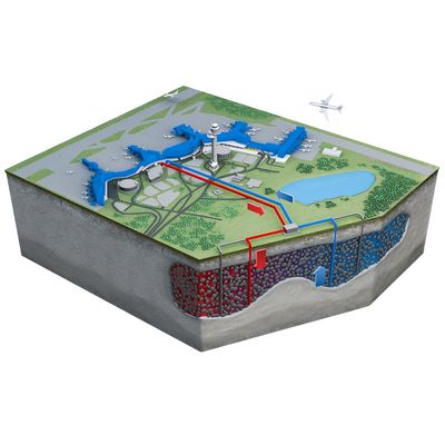 First, ATES won’t work at your site if there isn’t an aquifer present (if that’s the case, BTES should be considered). It also needs a reasonably large site to have enough room for both a cold and a warm store, so ATES is not going to be cost effective for most residential or small commercial sites. Due to the profound hydrogeologic and engineering knowledge required to design an ATES system, the design and construction costs will be relatively high compared to a conventional HVAC system. However, recent ATES projects in Europe are projecting a payback in about five years. The design life of an ATES project is approximately 30 years. Because an ATES system relies on groundwater injection and withdrawal through wells, care must be taken to avoid geochemical or operational conditions that could foul the well screens.