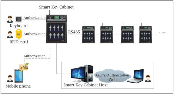 Smart Key Cabinet has a built-in serial port, Ethernet port and USB port. Data can be imported or exported using an USB device or remotely managed by mobile phone SMS and internet browser.