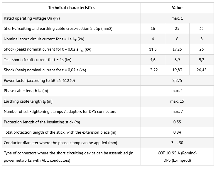 Aerial Bundle Cables (ABC) provided with DPS (ROMANIA) voltage connectors: use the short-circuiting subassembly, in whose plugs are mounted the coupling adaptors to DPS connectors (from the kit), the earthing subassembly and the mobile earthing rod.