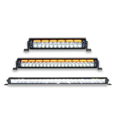 These utility light bars have a smooth edge lens with a bezel-less frame which reduces dirt, snow, and ice accumulation. The ICON Utility Bar is constructed of die-cast aluminum housing and a hard-coated polycarbonate lens with UV coating to resist scratches. Also, these bars are IP68 and IP69K rated, which means they are fully protected against dust and water. With these features in mind, it makes it durable to withstand tough conditions.