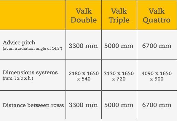 View here what size we recommend for the distance between the rows for minimal shading and optimum efficiency: