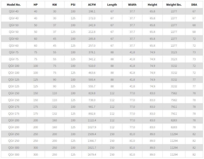Quincy QGV - Model 40-300 hp -Variable Speed Rotary Screw Air Compressor