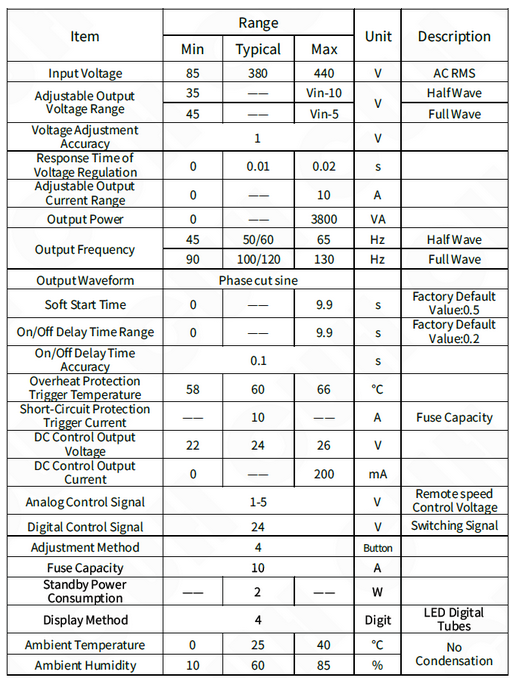 Automatic Voltage Regulation: The internal digital voltage regulation circuit can reduce feed speed variation caused by mains voltage fluctuation. Time Adjustable Soft Start: The controller will gently increase output voltage from o to the preset value when power on to avoid sudden shake. Soft start time can be digitally preset.