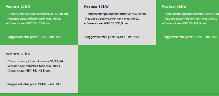 The new generation Ventum series is a giant leap in gasification technology that makes them the fastest-selling boilers in their class across Europe. It is designed to be efficient, economical and protect the environment. The ventum boilers are available from 20kW to 60kW and are easy to operate with their large firing openings and easily accessible cleaning options of both flue and ash.