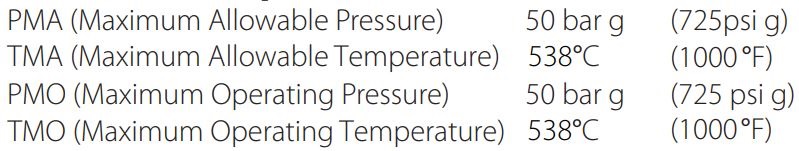 This product fully complies with the requirements of the European Pressure Equipment Directive 97/23/EC as well as ASME B31.1 and B31.3 and SANS 347:2007.