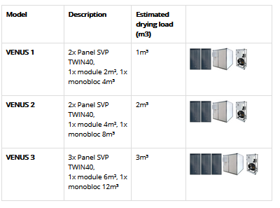 Modular drying and dehydration structures, for industrial and agricultural applications, with integration of the monoblock for solar dehydrator. Modular structures are available without the inclusion of hot air collector panels, SVP TWIN. Available models for 2 or 4 panels, with extensions of 2 m depth.