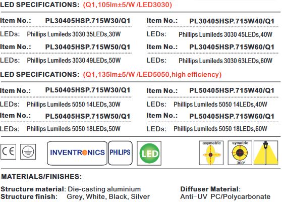 Hispalis - Model PL30405HSP.715/Q1 , PL50405HSP.715/Q1 -Vertical Mounted Type LED Street Light