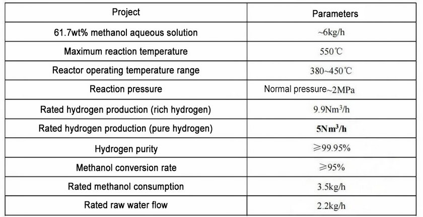 The basic principle of the equipment process is to use methanol vapor to react with water vapor under the action of catalyst at high temperature to generate crude hydrogen, enter the purifier for purification to obtain high-purity hydrogen, and then use the downstream fuel cell system to power the power unit, or store it in the battery-based energy storage system for standby use.