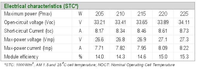 VGS - Model P - 215W -Polycrystalline Panel Module