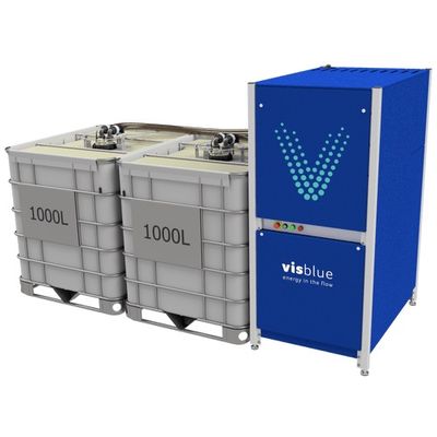The module consists of two 1000L IBC pallet tanks and a 19`` rack stand. This has an output of 10 kW and a capacity of 40 kWh. For larger systems, several modules can be combined for the desired output and capacity.